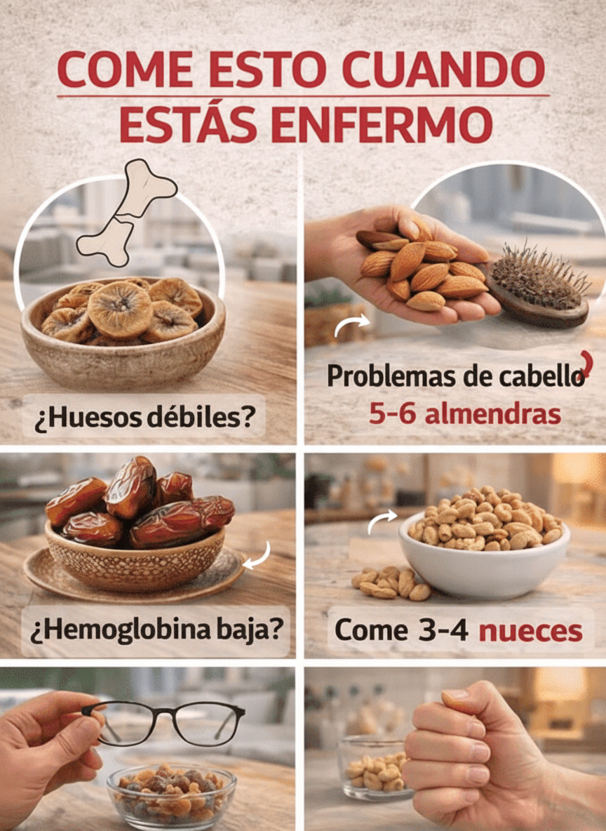 | Hemoglobina baja | Dátiles | 2–3 piezas |