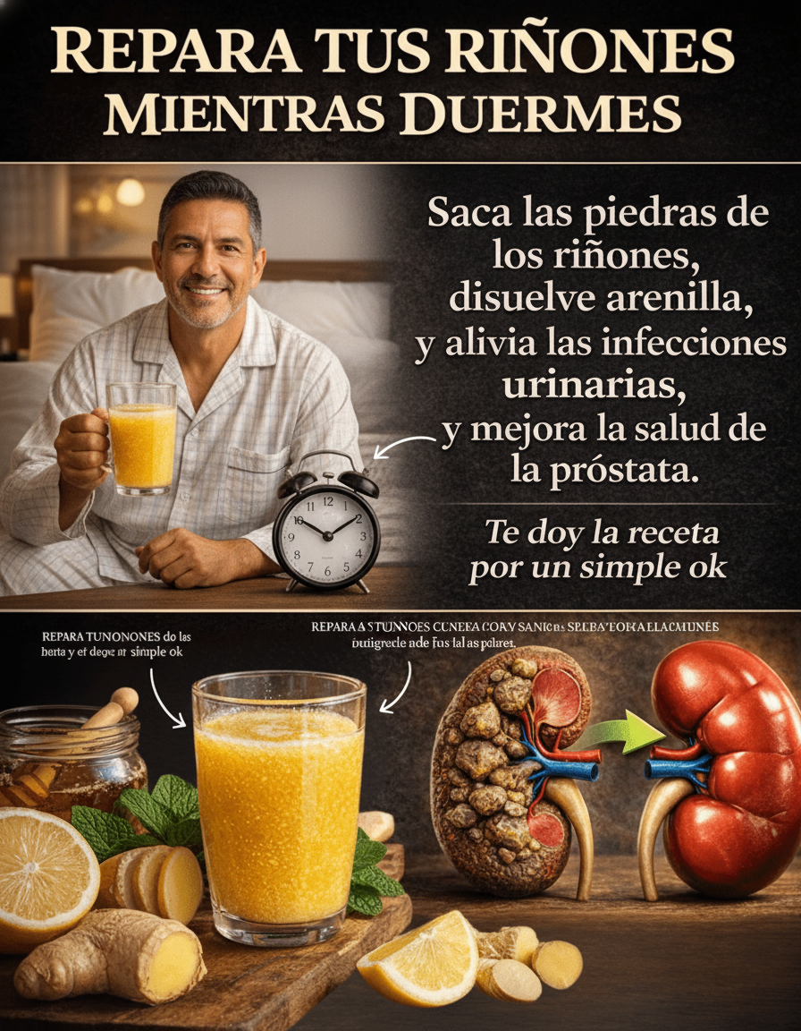 Es un hecho que, mientras dormimos profundamente, nuestros riñones trabajan incansablemente para filtrar la sangre, eliminar toxinas y mantener un equilibrio hídrico óptimo en el cuerpo. Lo que muchos desconocen es cómo la ingesta de líquidos y ciertos nutrientes antes de acostarse puede potenciar o dificultar este crucial proceso de reparación nocturna. En este artículo, revelaremos una bebida natural, cuidadosamente formulada con ingredientes conocidos por sus propiedades diuréticas suaves, antiinflamatorias y, en algunos casos, su capacidad para ayudar a disolver pequeños cristales, basándonos en la sabiduría popular y la ciencia emergente. Es fundamental aclarar que esta preparación no está diseñada para disolver cálculos renales de gran tamaño ni para curar infecciones avanzadas, las cuales siempre requieren atención médica profesional. Sin embargo, puede ser un valioso aliado en la prevención, el alivio de síntomas menores y la promoción de la eliminación natural de arenilla. ¿Intrigado? Continúa leyendo para descubrir cómo esta sencilla bebida podría mejorar significativamente la calidad de tus noches y el bienestar de tus riñones.