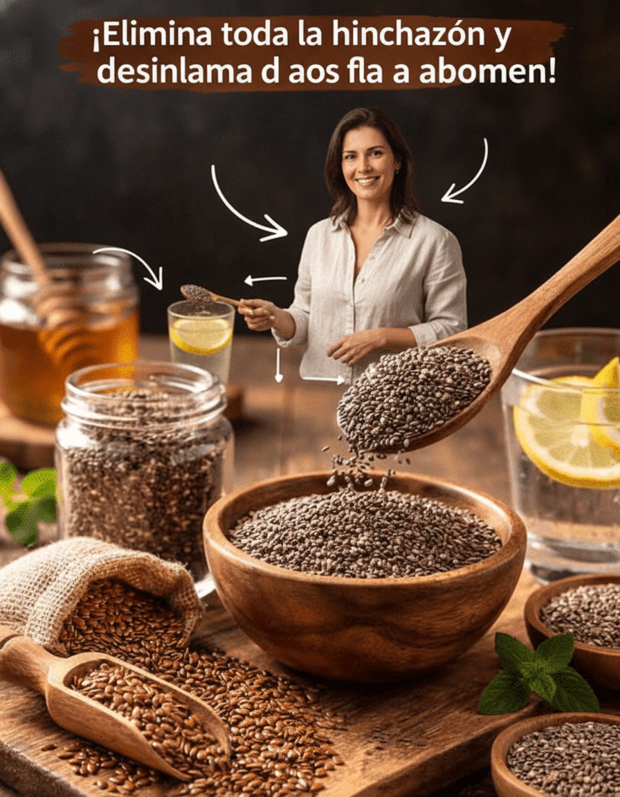 Pero existe una solución natural y sencilla que muchas personas están adoptando: un batido preparado con semillas de chía, linaza molida, limón y un toque de miel cruda, consumido justo antes de dormir. Es importante aclarar que este batido no promete una pérdida de peso drástica e irreal de 11 kilos en pocas horas; eso es físicamente imposible y peligroso. Sin embargo, sí puede inducir una notable sensación de “deshinchazón rápida” y alivio digestivo en tan solo 1 a 3 días, especialmente en individuos que experimentan estreñimiento crónico, retención de líquidos y gases.