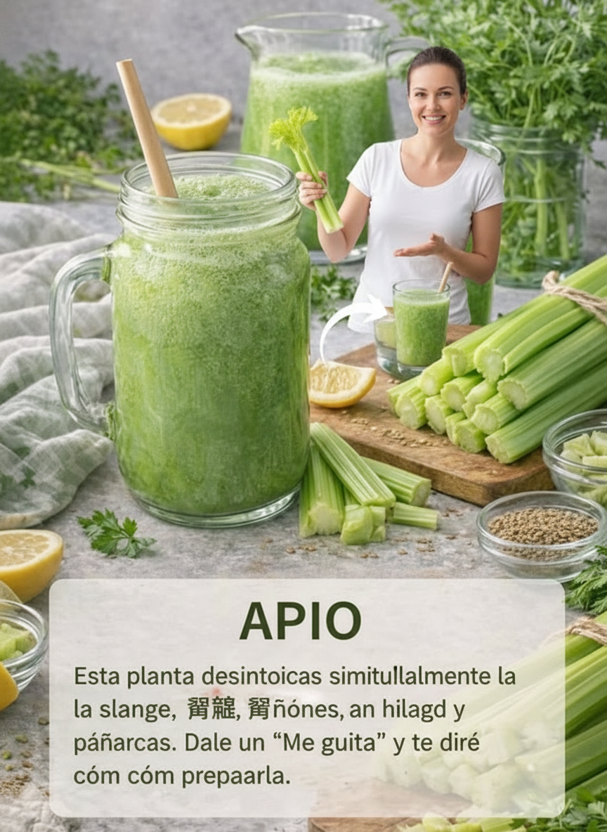 Este humilde vegetal, a menudo subestimado, posee propiedades extraordinarias. El apio no solo es una fuente rica en vitaminas y minerales esenciales, sino que también es un potente agente desintoxicante capaz de ayudarte a limpiar tu organismo de impurezas.