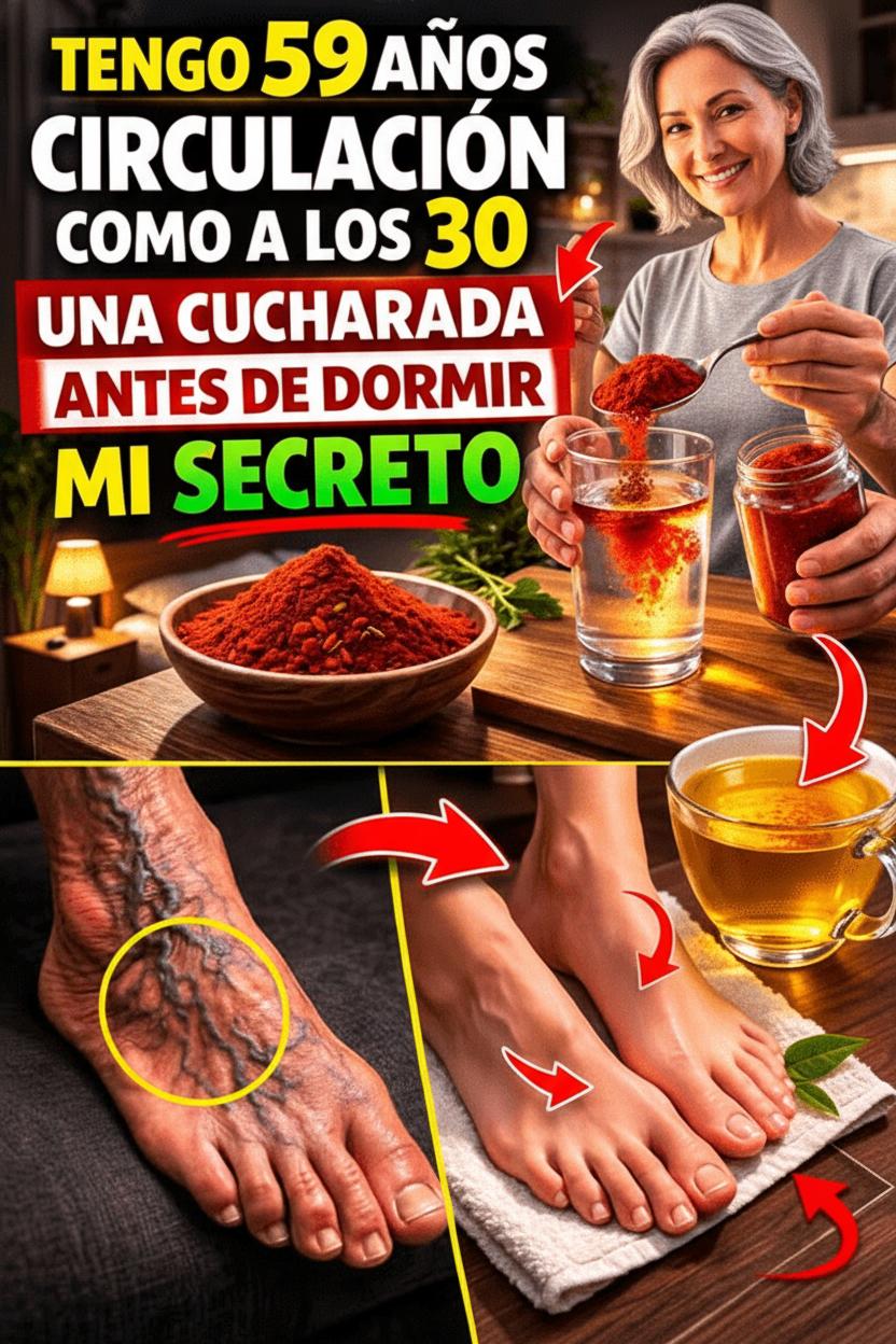 ¿Experimentas con frecuencia una sensación de piernas cansadas al finalizar el día, pies fríos o una disminución general en tus niveles de energía? Con el paso del tiempo, es natural que el sistema circulatorio ralentice su ritmo, lo que puede manifestarse en síntomas incómodos como hinchazón, fatiga en las extremidades inferiores o esa molesta pesadez que interrumpe tu descanso nocturno. Estas alteraciones son comunes entre los adultos mayores de 60 años y, aunque son parte inherente del proceso de envejecimiento, pueden impactar significativamente tu bienestar cotidiano. Sin embargo, existe una solución sorprendente y completamente natural, presente en la mayoría de nuestras cocinas, que está ganando reconocimiento por su capacidad para potenciar el flujo sanguíneo de manera suave y efectiva. Nos referimos a la pimienta de cayena, y lo más fascinante es que una pequeña cucharadita antes de acostarte podría transformarse en un ritual sencillo para mejorar tu salud circulatoria. Continúa leyendo hasta el final, donde te desvelaremos la forma más segura y práctica de prepararla, además de compartir consejos valiosos que han beneficiado a muchos.