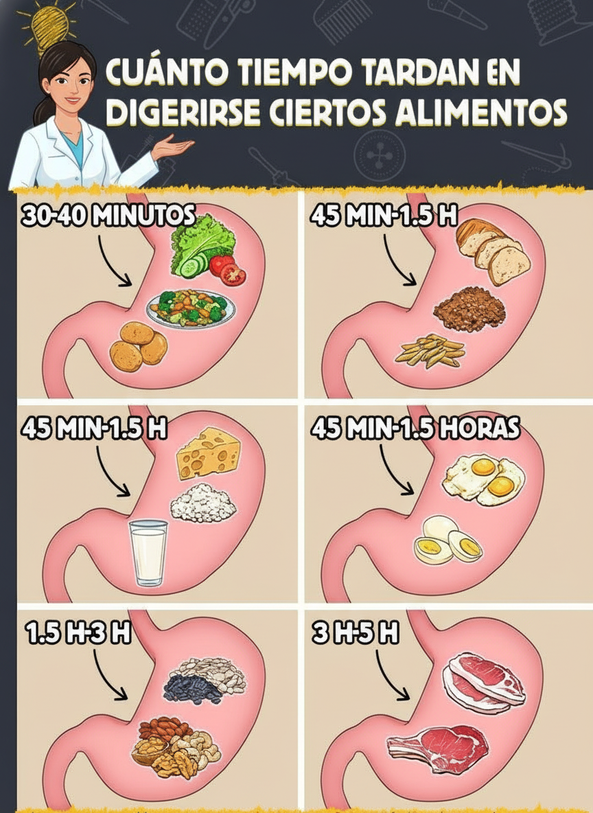 Tiempo Promedio de Digestión de Alimentos Comunes