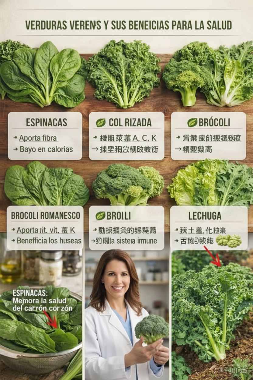 Q1: ¿Qué nutrientes específicos se encuentran en las verduras verdes?